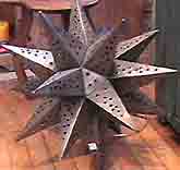 and tin and glass wall sconces. Hand punched tin stars and hanging